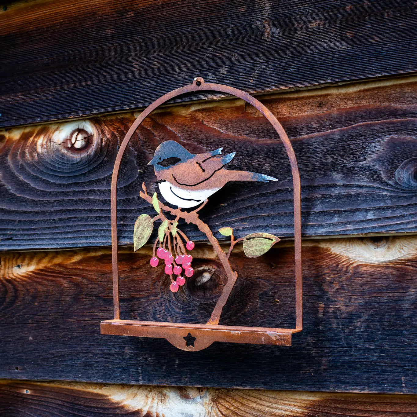 Chickadee with Red Berries, Rusty Metal Wall Art