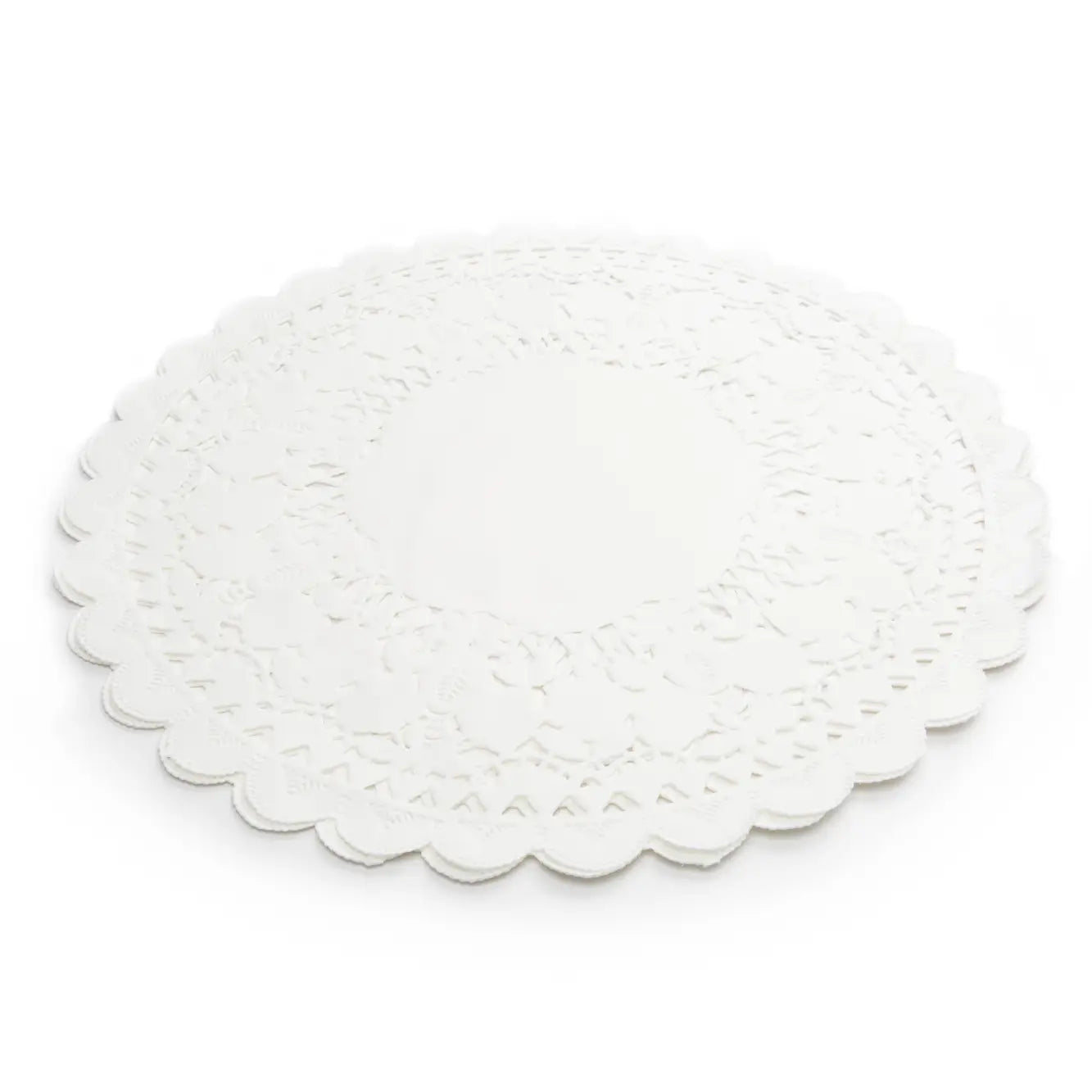 Classic Round paper lace doilies. Package of 12. Perfect for displaying your favorite appetizer, dessert, or treats on platters or plates. Delicate and beautiful way to add elegance to various areas around your house. (Also makes for easy clean up!) We are offering three of our most useful sizes: 12", 10" and 8".
