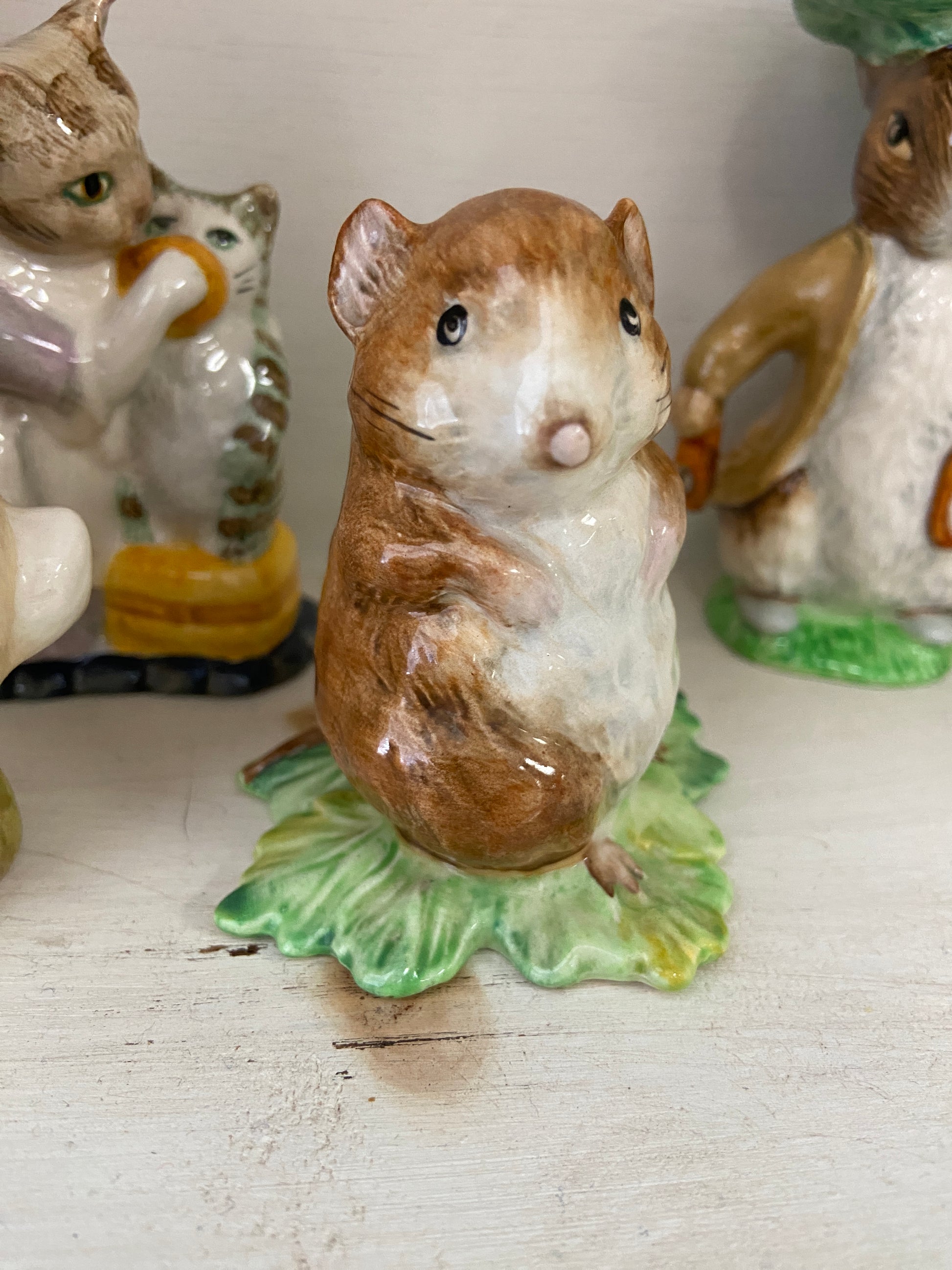 I started collecting Beatrix Potter figures when I first moved away from home. From the time I managed to scrape together thirty dollars that didn’t have to pay the electric bill, I was indulging. There was a little shop next to the record store where I worked that sold them. I would go there and think “which one will I get next?” It was the first place I would take my paycheck. My value system has always been in the right place. Here is a little one I found for you, my fellow Beatrix Potter Collector! Bottom reads: Beatrix Potter's, "Timmy Willie", F. Warne & Co. Ltd. Copyright 1949. 3" tall.