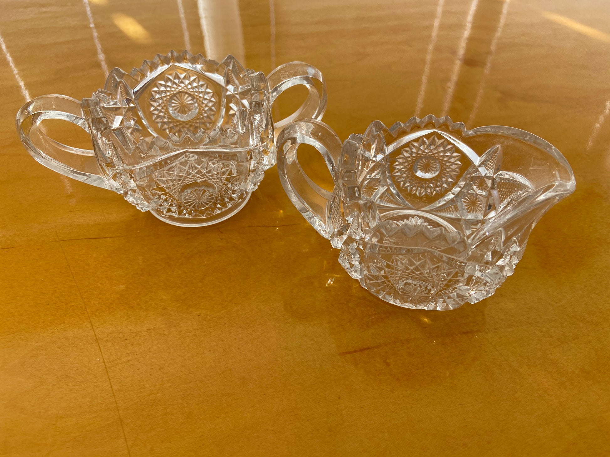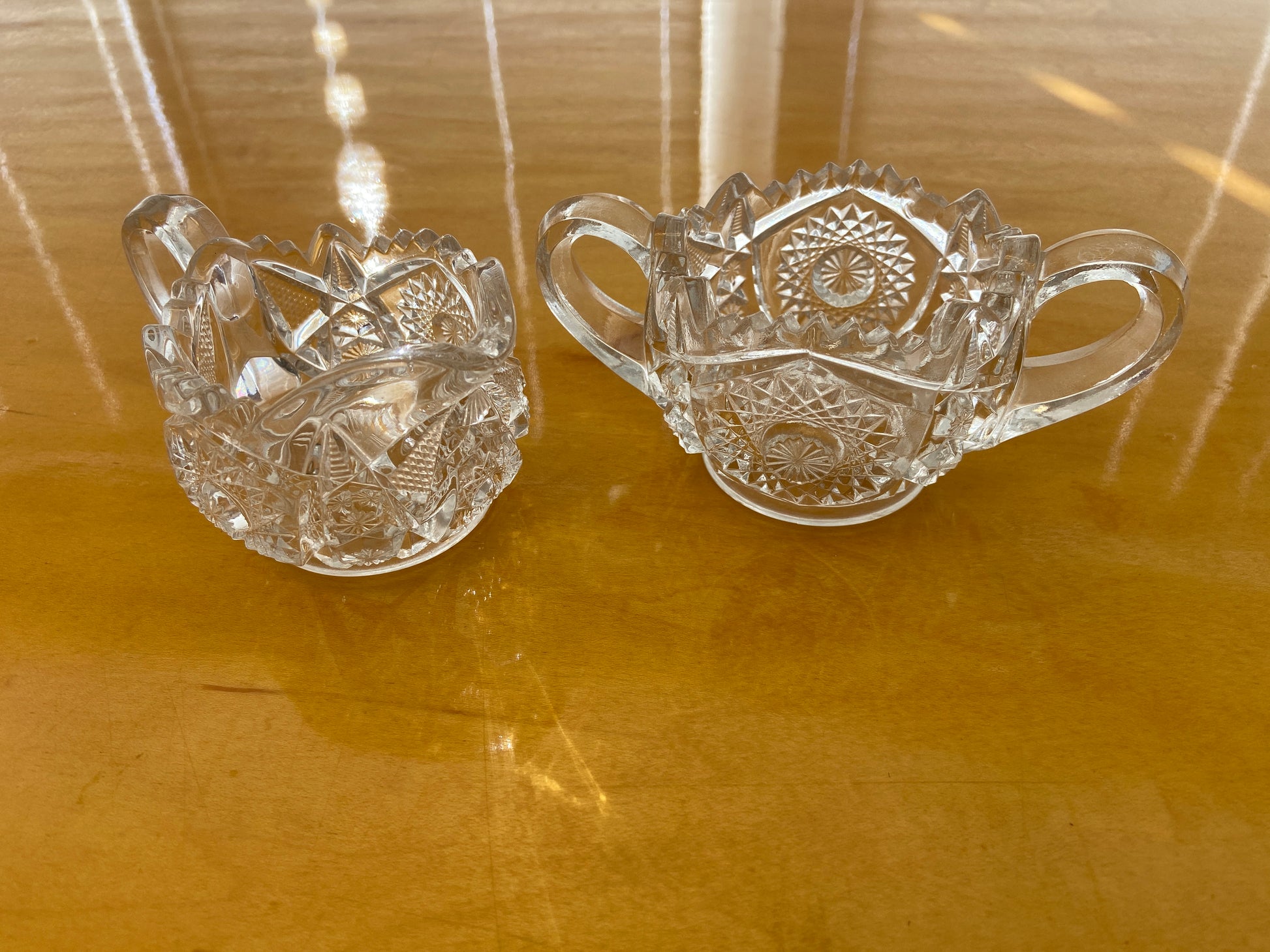 Vintage Sun Burst Sawtooth Glass Sugar & Creamer Votive Set